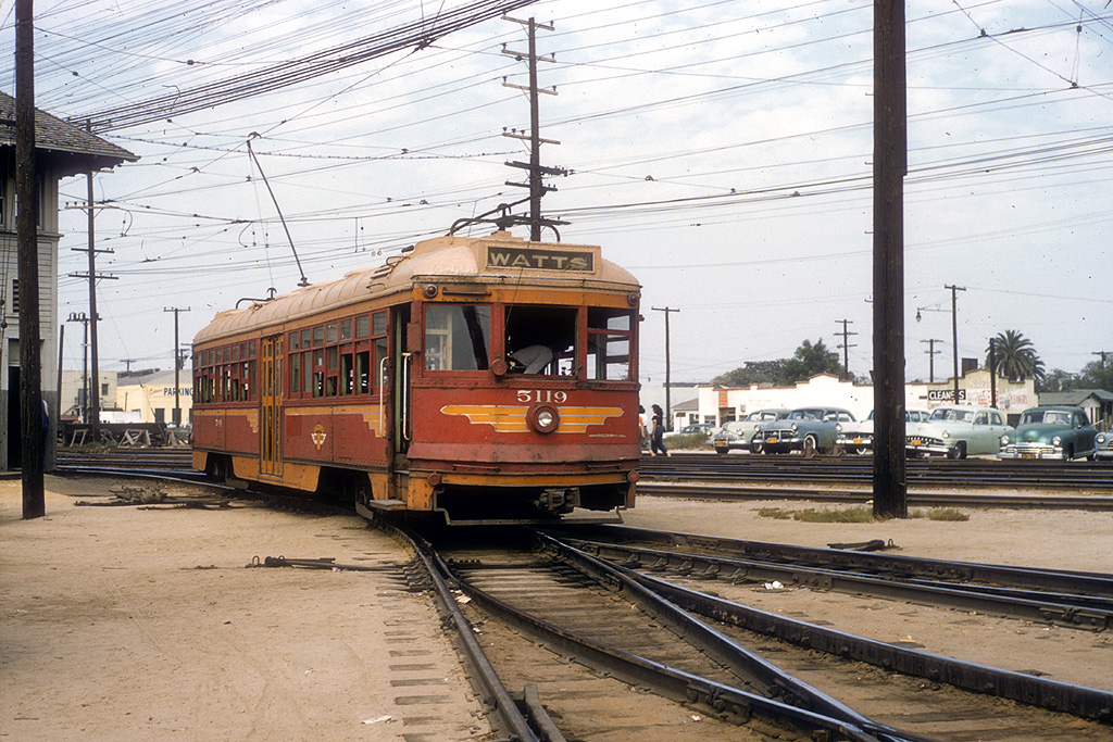 Car 5119 slips off the main and into Watts Car House in Watts. |