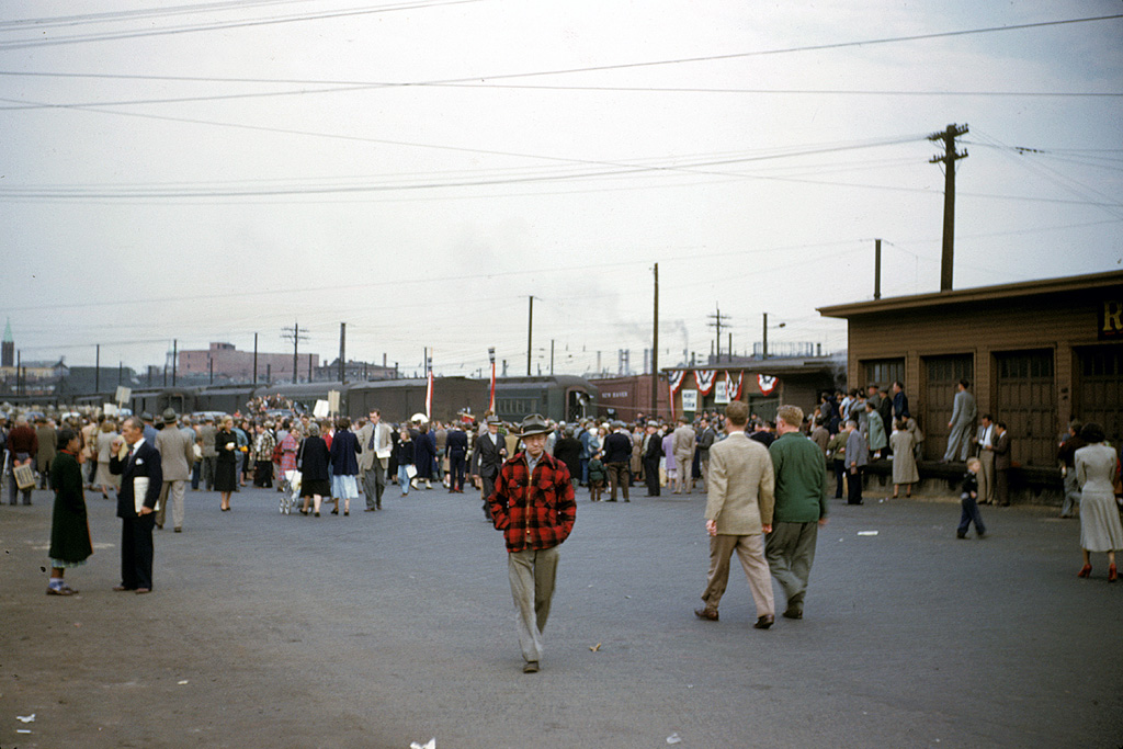 A crowd begins to gather at the New Haven platforms with word the President will speak. |