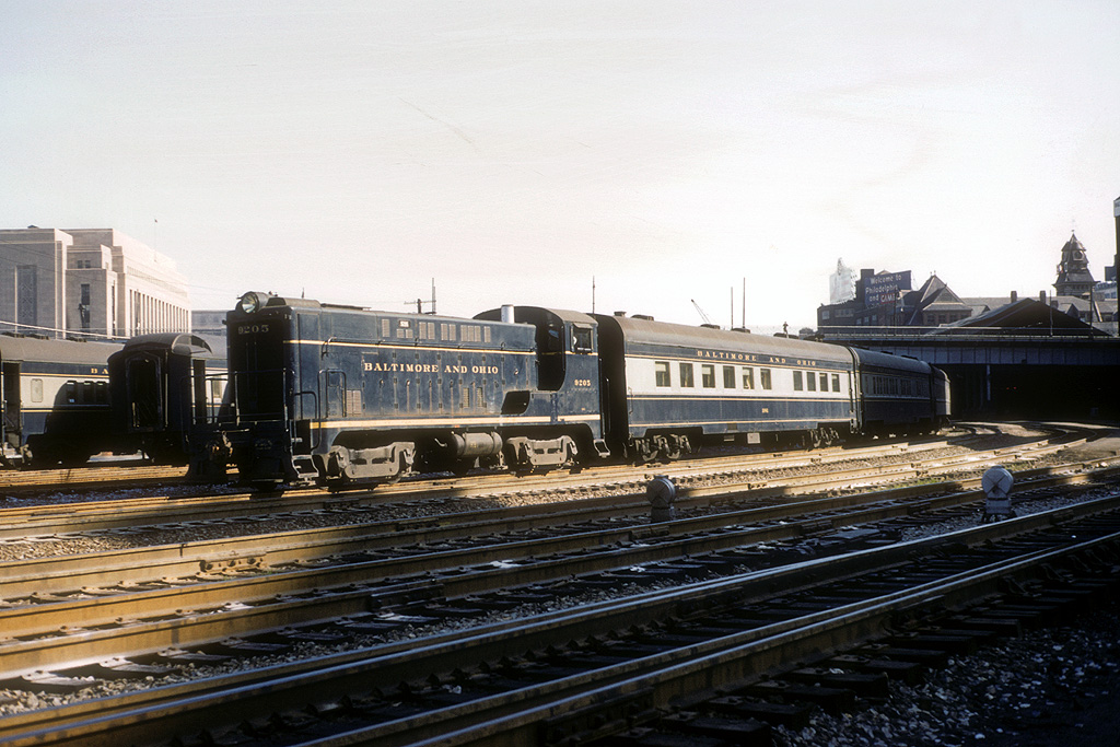 Passenger train hostling at Philadelphia is handled by Baldwin-Westinghouse power manufactured during the latter part of WWII years. B&O would end passenger service at the Chestnut St. station shortly after this photo was taken. |