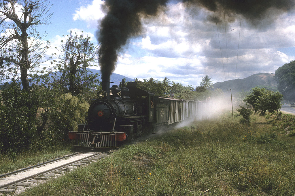 A short freight passes by somewhere in El Salvador.