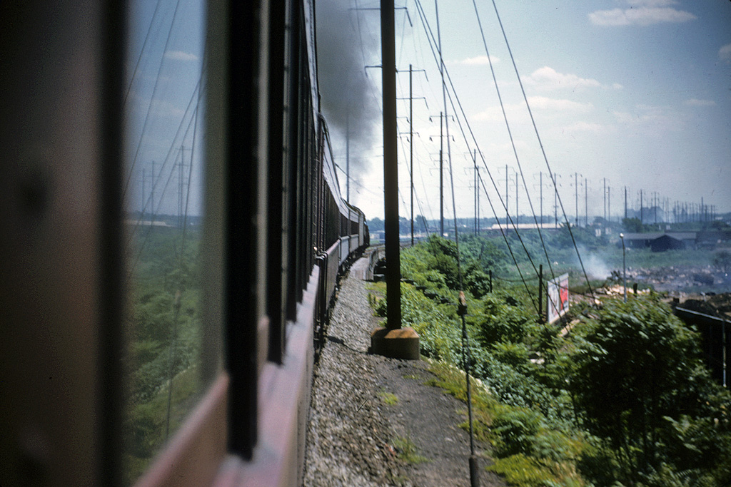 The train climbs the grade on the approach to the Delair Bridge crossing the Delaware River six miles out on its journey to Wildwood, NJ. |
