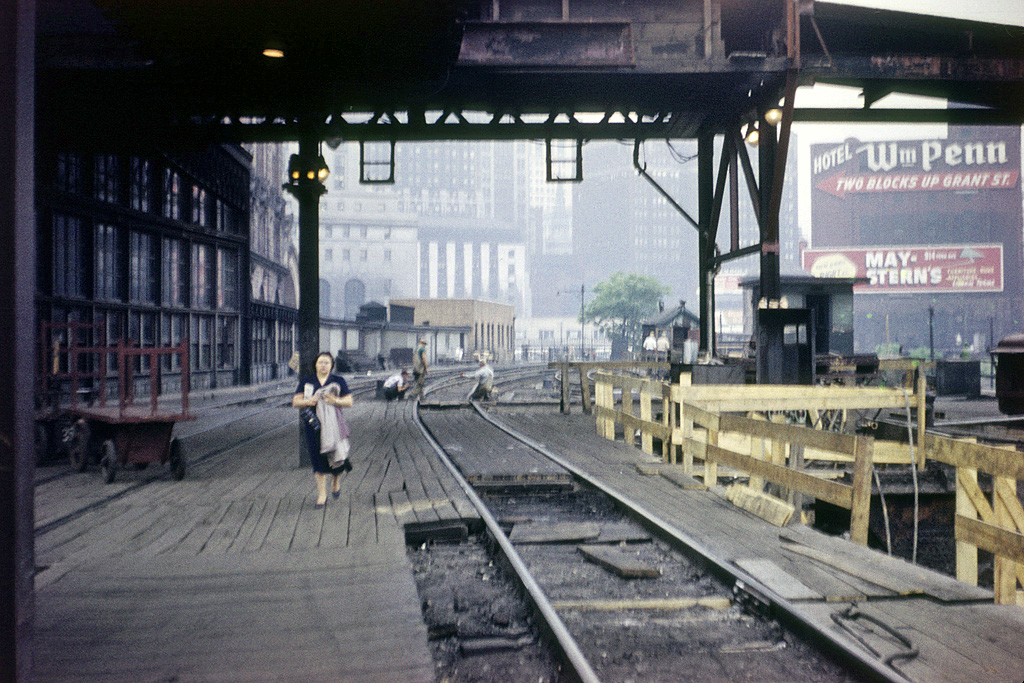 PRR platform construction meant passengers had to navigate through to board their train. This is the Fort Wayne line which crosses the Alleghenny River a short distance ahead. |
