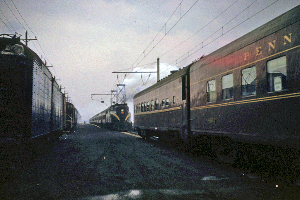 Moving deeper into the yard, we see another consist tied onto a GG1 on our right. |