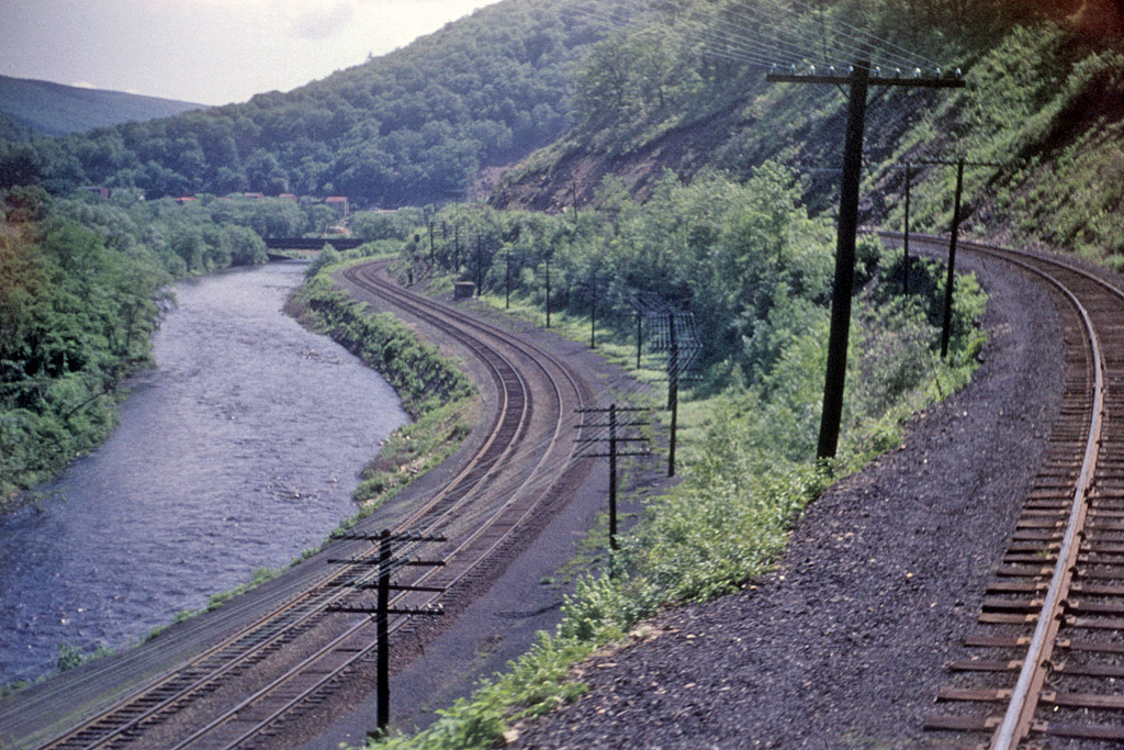 Stunning! The lack of trees is unbelievable! I run trains on the now single track former Reading trackage 5 days a week. The bank along the river is now totally overgrown with trees and in summer you can barely see the river. The Pennsy is now a hiking/biking trail. |