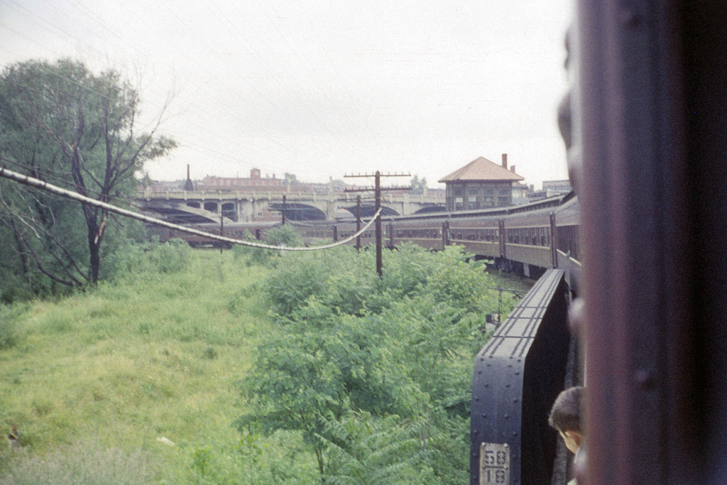 PRR's Reading tower is ahead as we cross bridge 58/18 into Reading. |