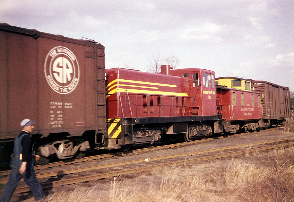 RV #16 works a cut of cars. This locomotive, the first diesel on the RV roster, is saved at the Whippany Railway Museum. |